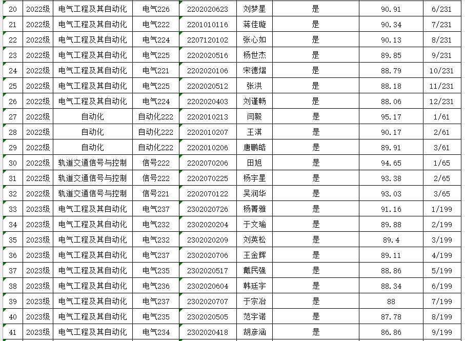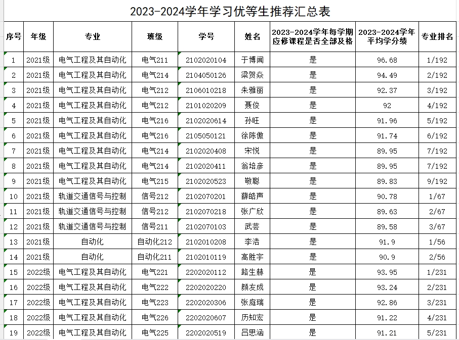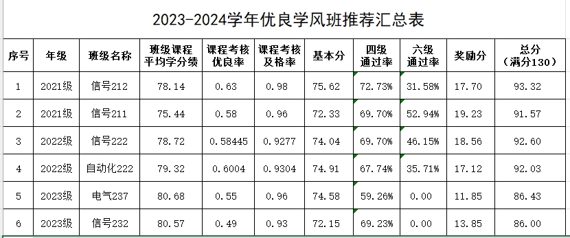 2023-2024学年学习优等生、优良学风班推荐名单予以公示: