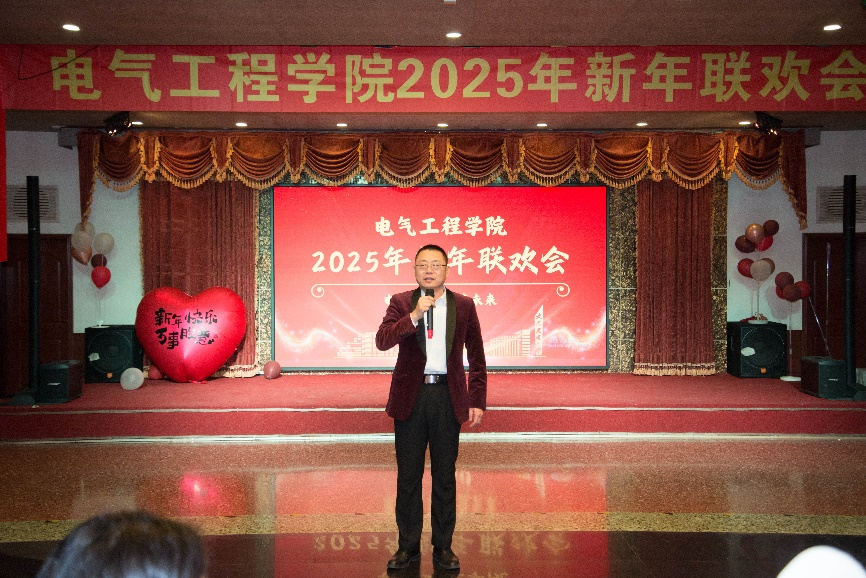联欢会伊始,院长李荣华发表致辞。他表示,2024年是艰苦而有意义的一年,在全体师生的共同努力下,学院在多个领域取得了新的突破和成绩。他鼓励全院教职工们不忘初心、砥砺前行,携手共创电气学院更加美好的明天。